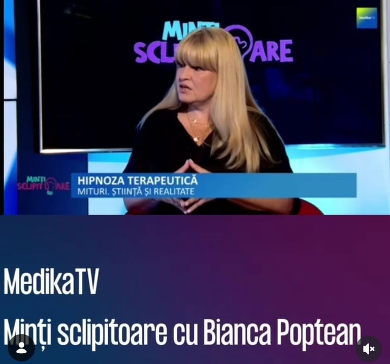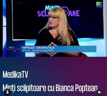 "Hipnoza terapeutică" - iunie 2025 - Medika TV - invitat emisiune TV "Minți sclipitoare cu Bianca Poptean"